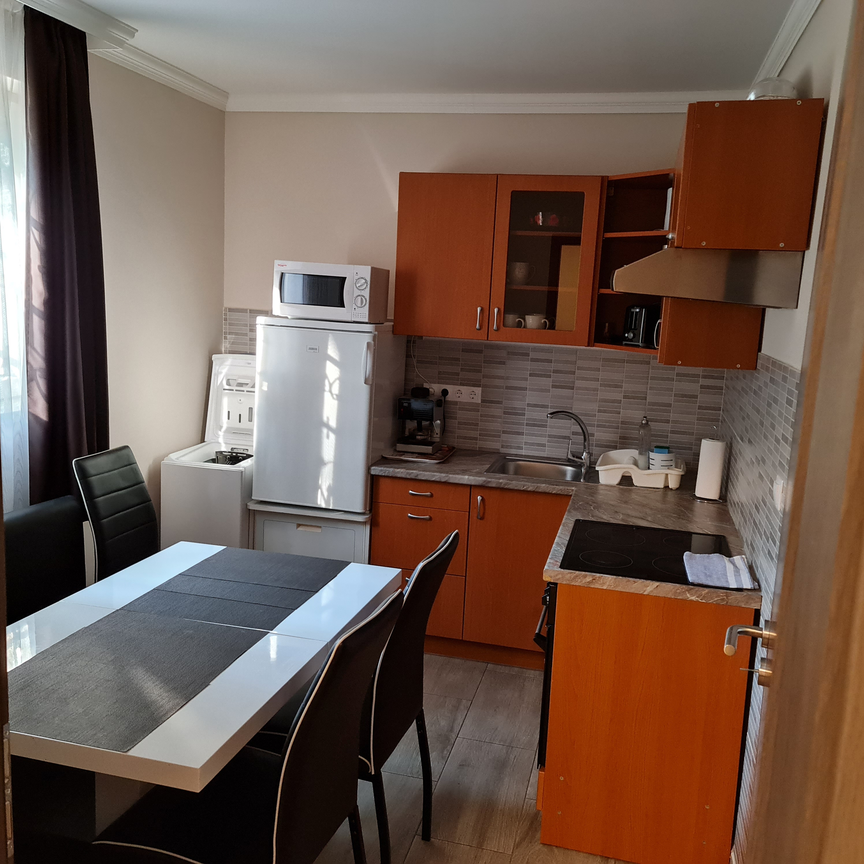 Konyha: /jól felszereltek/ hűtőszekrény fagyasztórésszel, mikrohullámú sütő, kávéfőző, kenyérpirító, vízforraló, főzési sütési lehetőség